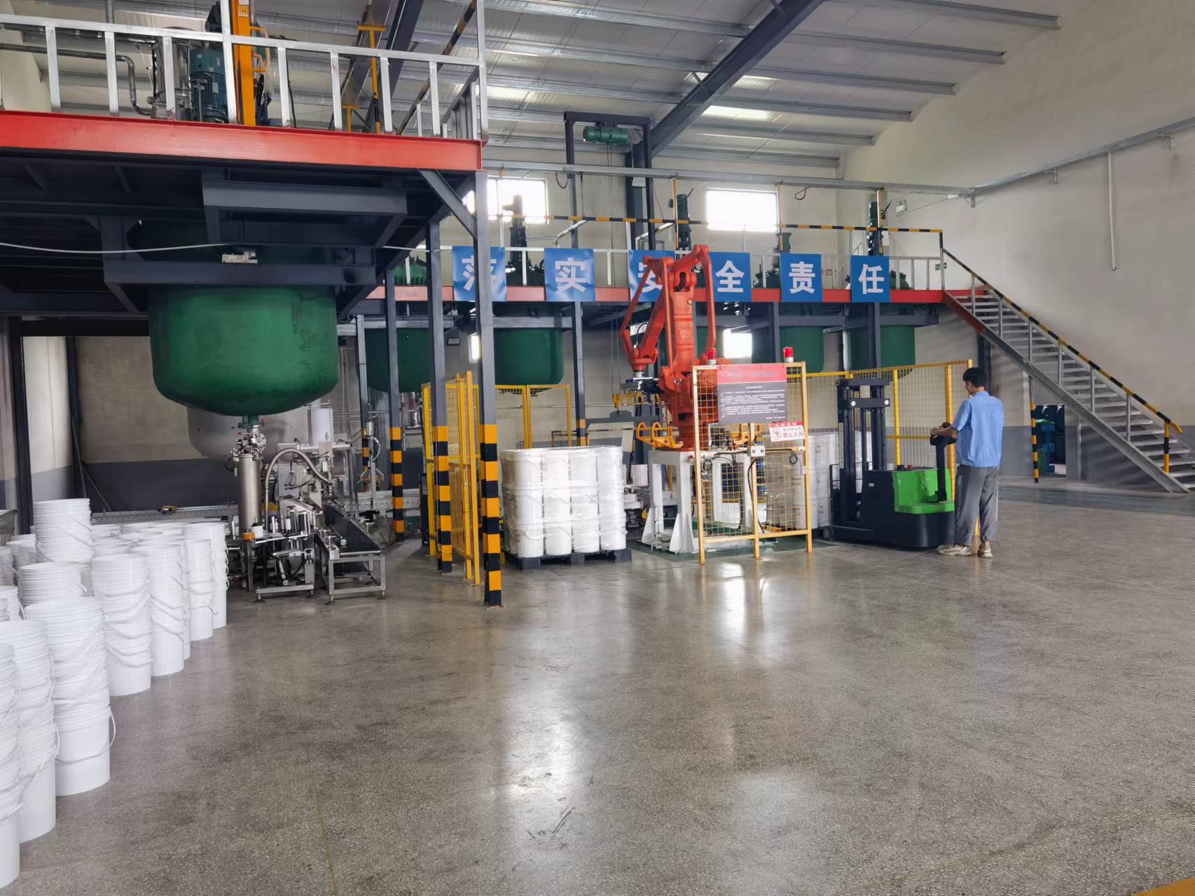 水基膠自動化包裝、碼垛生產(chǎn)線